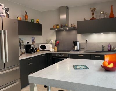 – 1 chambre double (160×200) avec grande armoire et salle de douche privative.